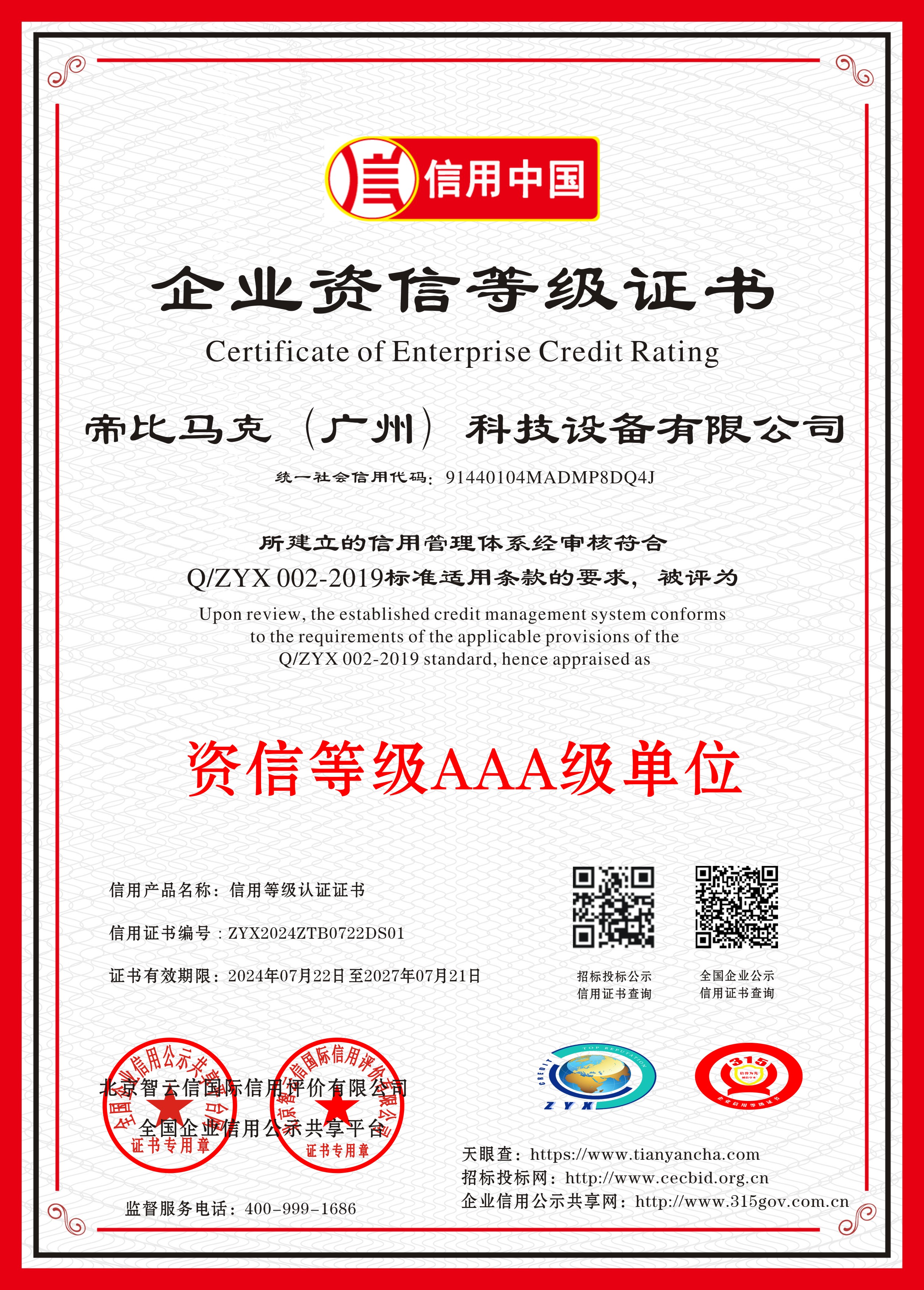 重合同守信用AAA等級(jí)